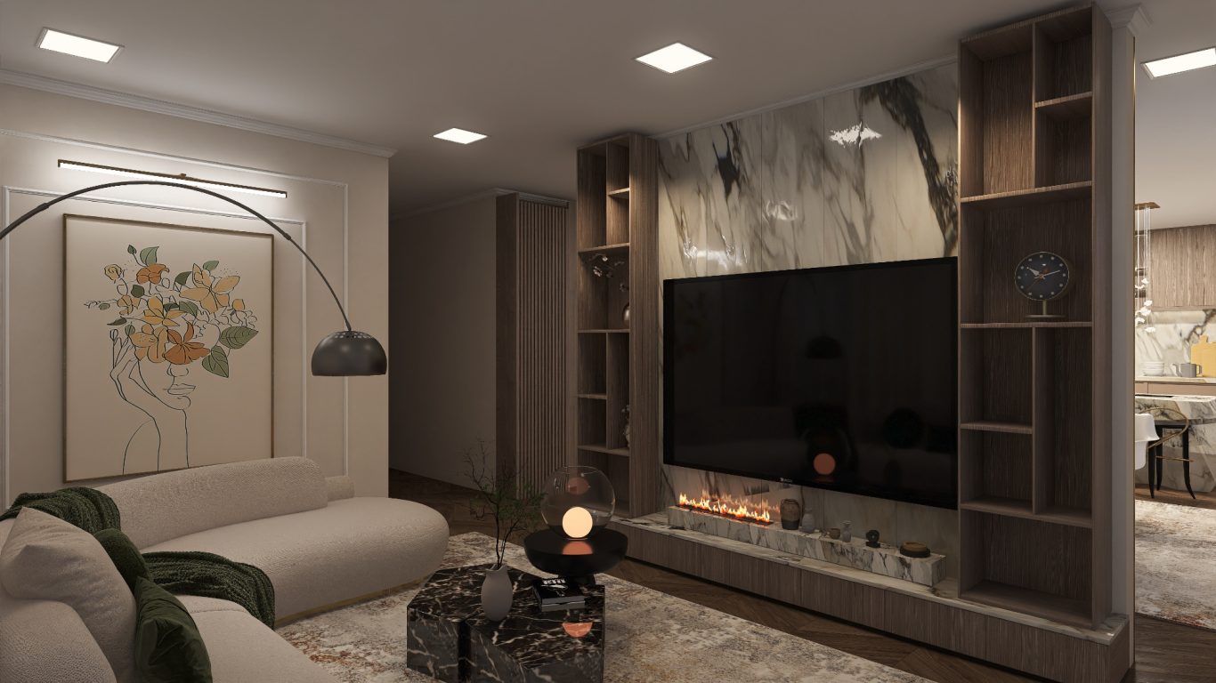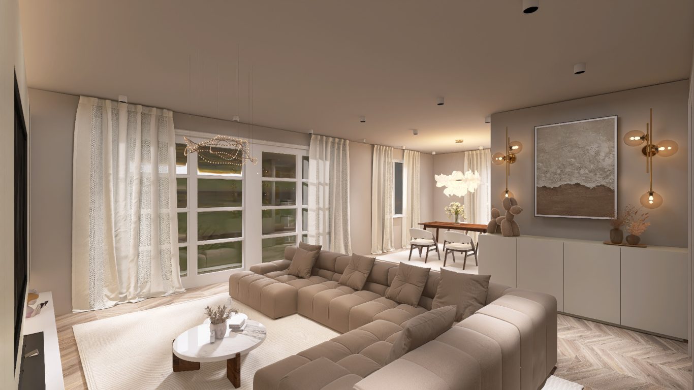 Bei dieser Penthousewohnung stand der Wunsch der Kundin im Mittelpunkt, einen Ort zu schaffen, an dem moderner Minimalismus und luxuriöse Eleganz harmonisch miteinander verschmelzen. Entstanden ist ein Zuhause, das den Zauber von Hollywood Glam versprüht – mit edlen Materialien, glänzenden Akzenten und einer stilvollen Inszenierung von Licht und Raum. Trotz der glamourösen Elemente wirkt das Interieur verspielt und leicht, ohne je überladen zu erscheinen. So entstand ein einzigartiges Wohngefühl, das Eleganz, Persönlichkeit und Wohlfühlatmosphäre perfekt vereint.