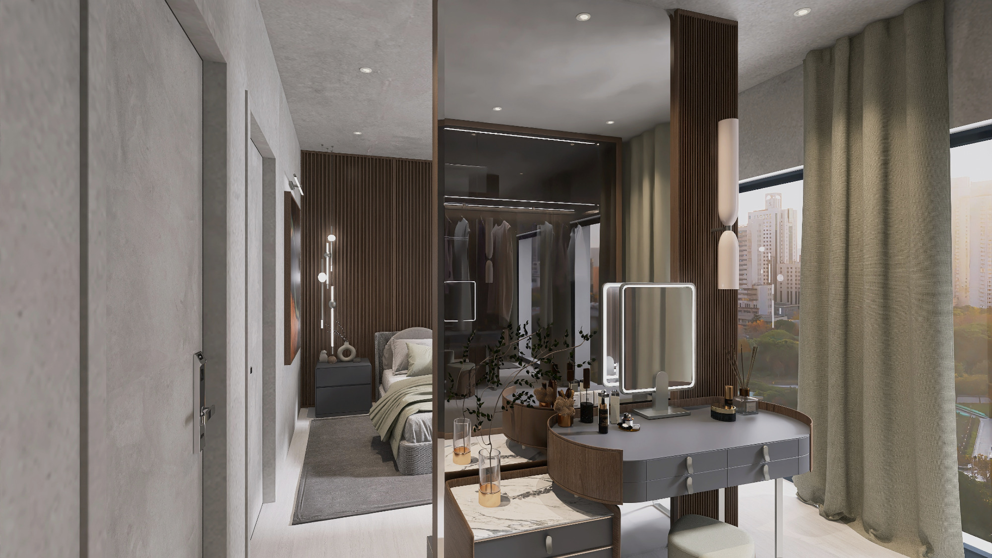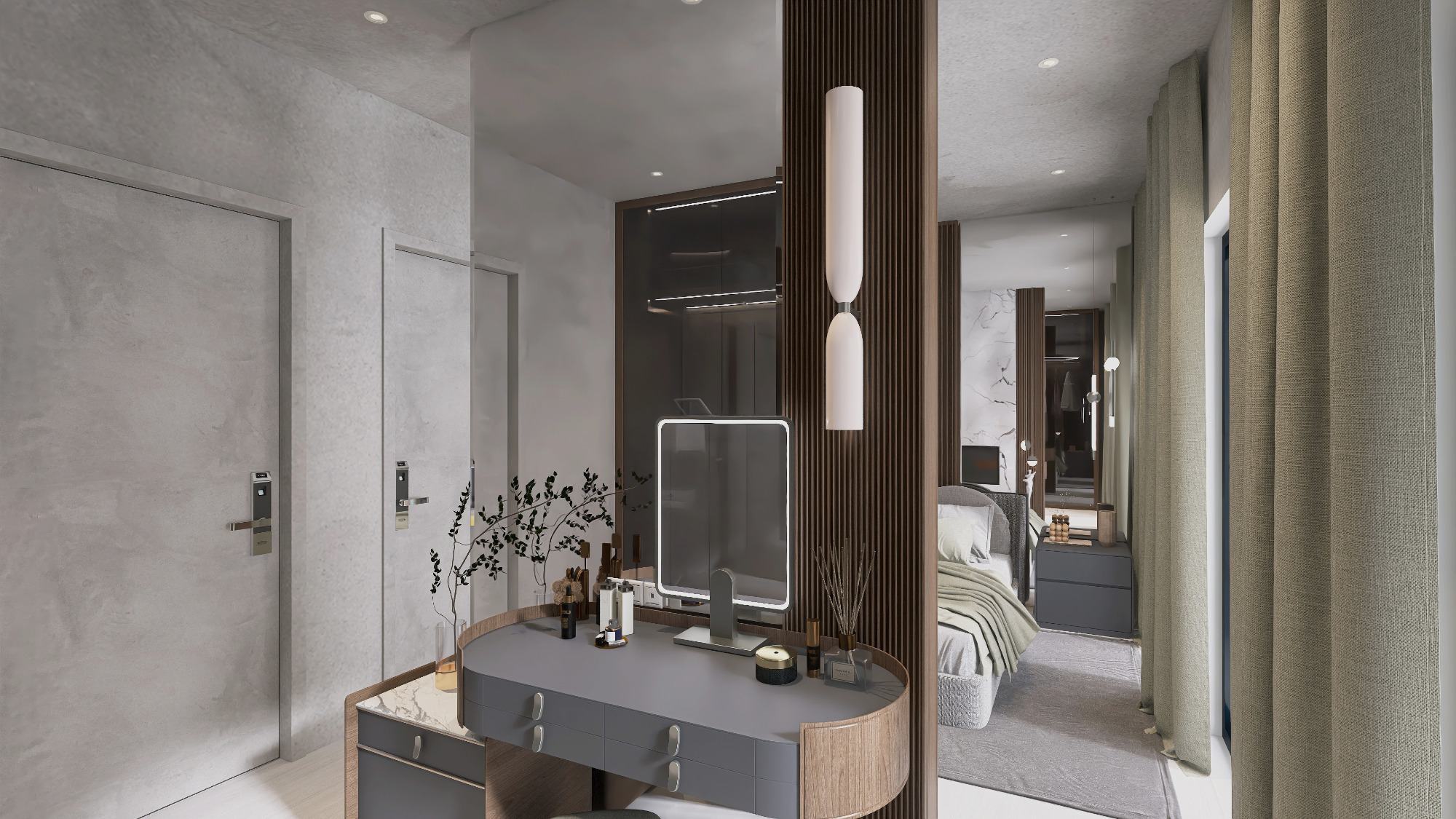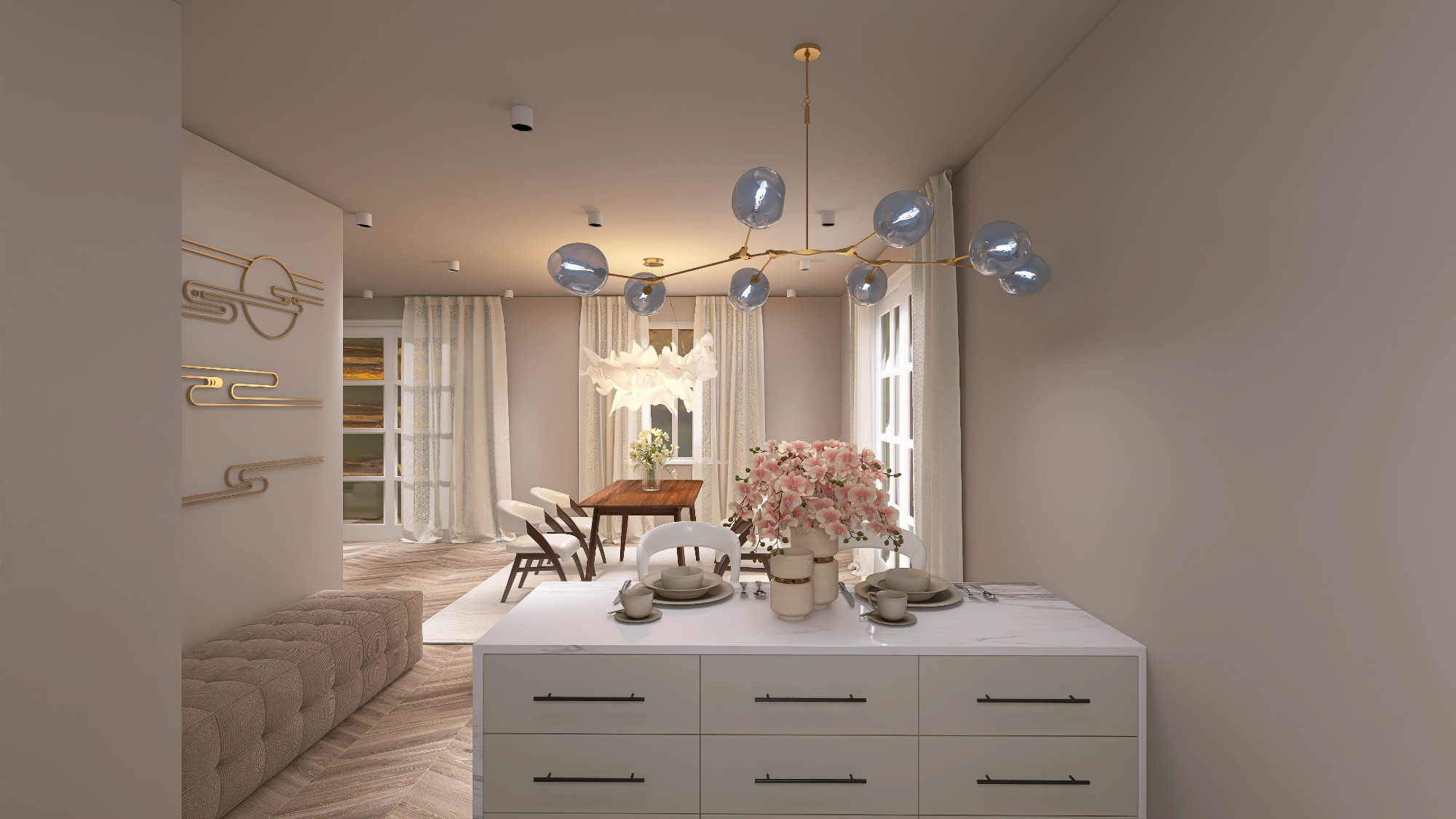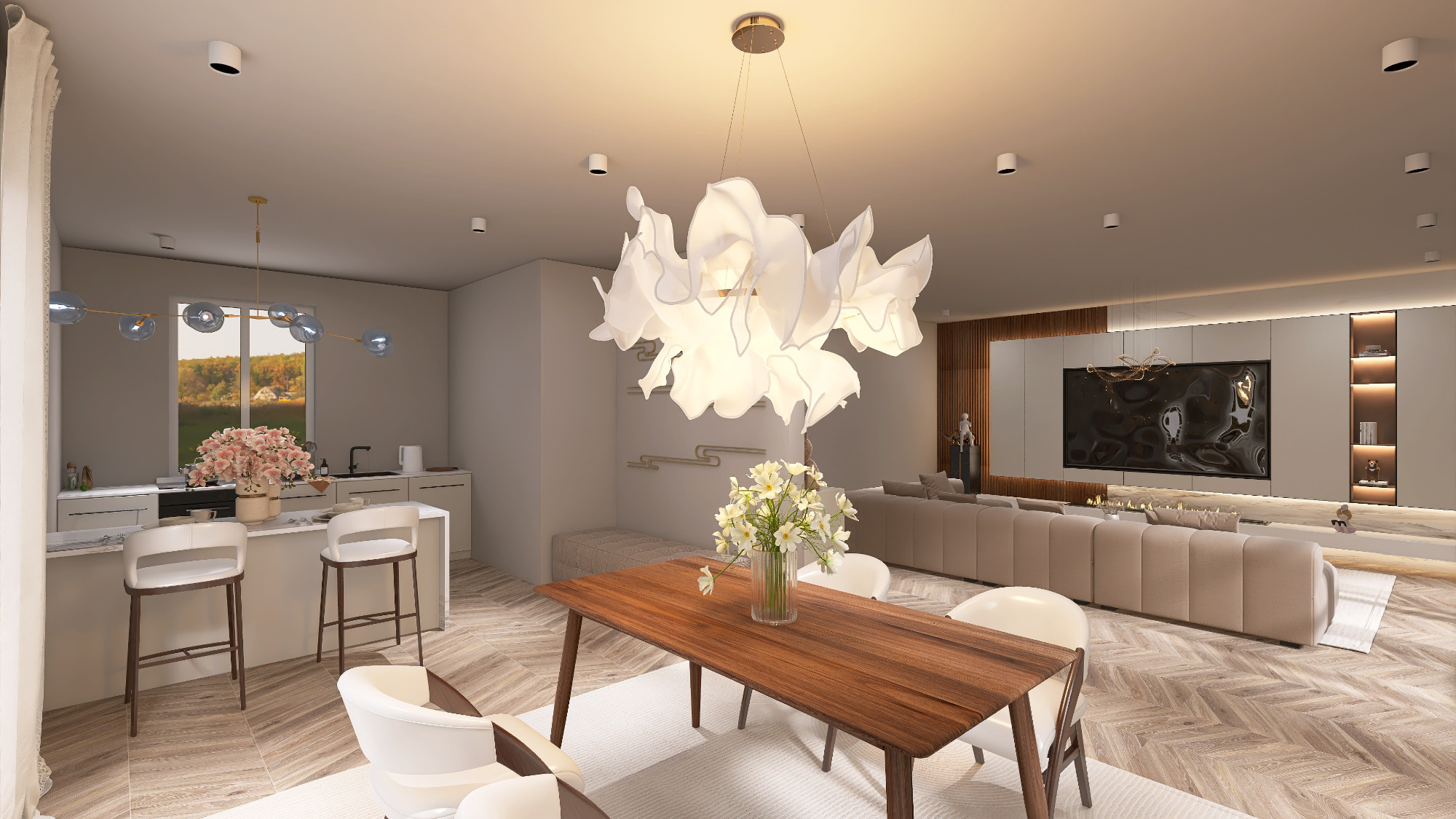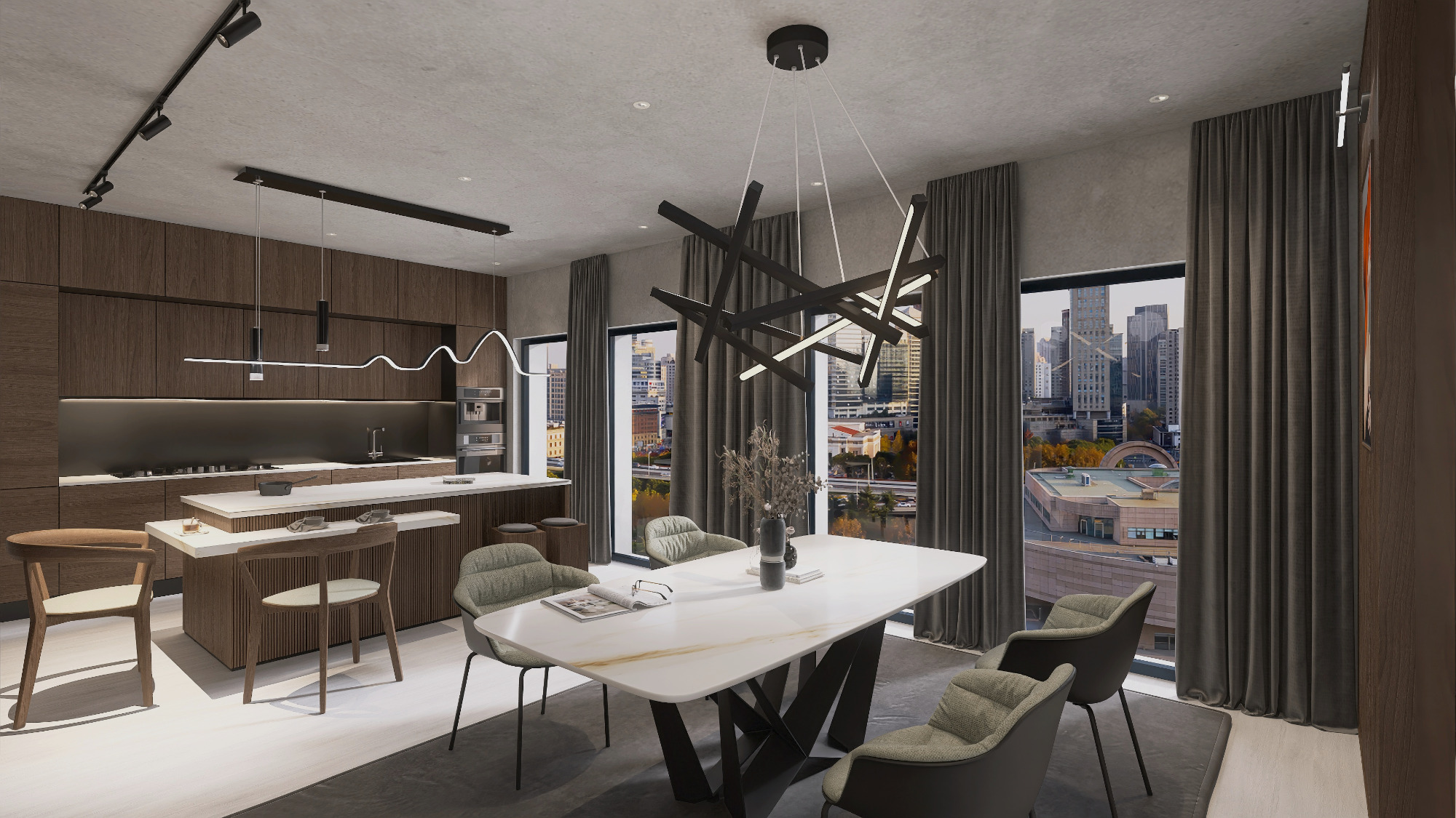 Bei dieser Penthousewohnung stand der Wunsch der Kundin im Mittelpunkt, einen Ort zu schaffen, an dem moderner Minimalismus und luxuriöse Eleganz harmonisch miteinander verschmelzen. Entstanden ist ein Zuhause, das den Zauber von Hollywood Glam versprüht – mit edlen Materialien, glänzenden Akzenten und einer stilvollen Inszenierung von Licht und Raum. Trotz der glamourösen Elemente wirkt das Interieur verspielt und leicht, ohne je überladen zu erscheinen. So entstand ein einzigartiges Wohngefühl, das Eleganz, Persönlichkeit und Wohlfühlatmosphäre perfekt vereint.