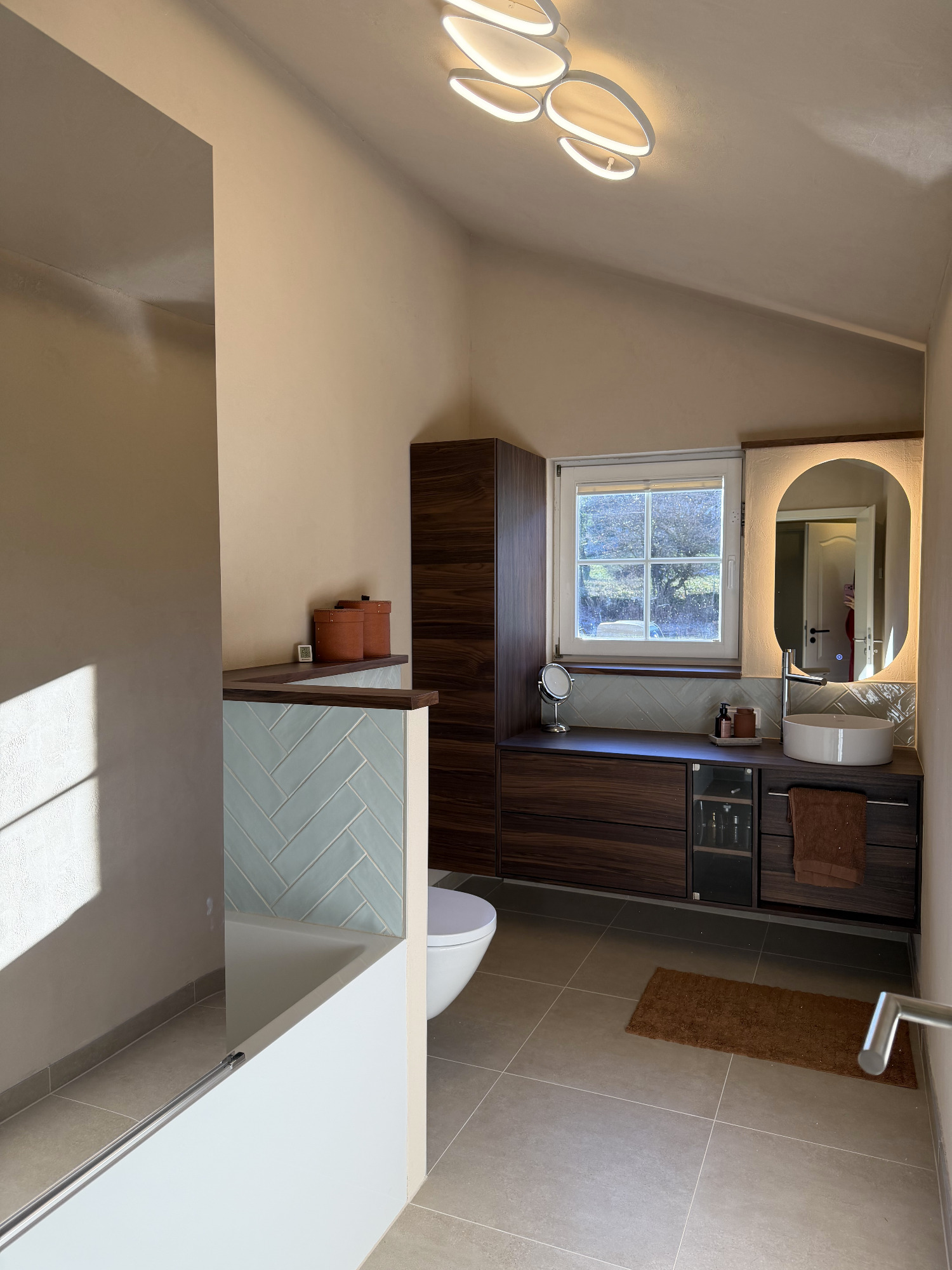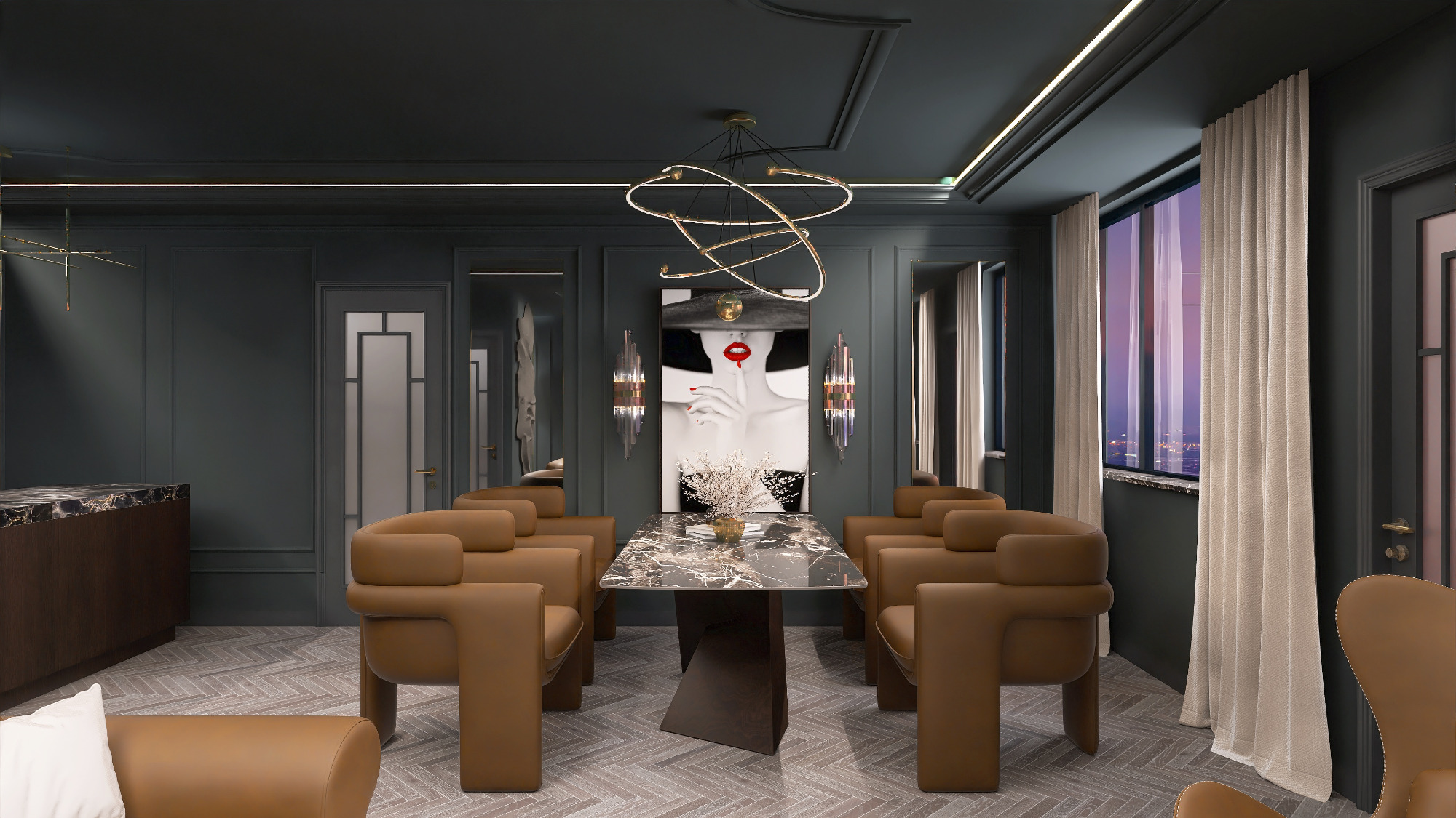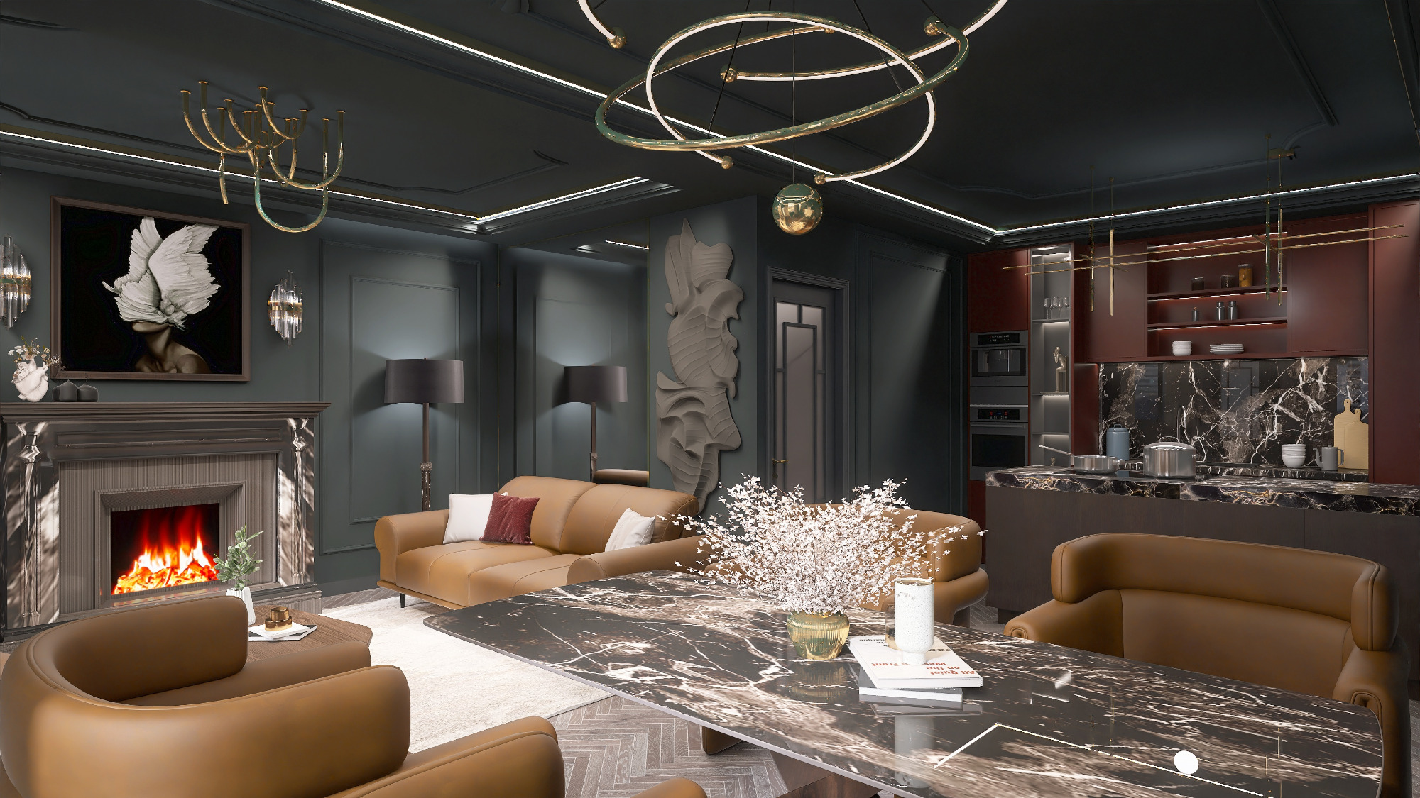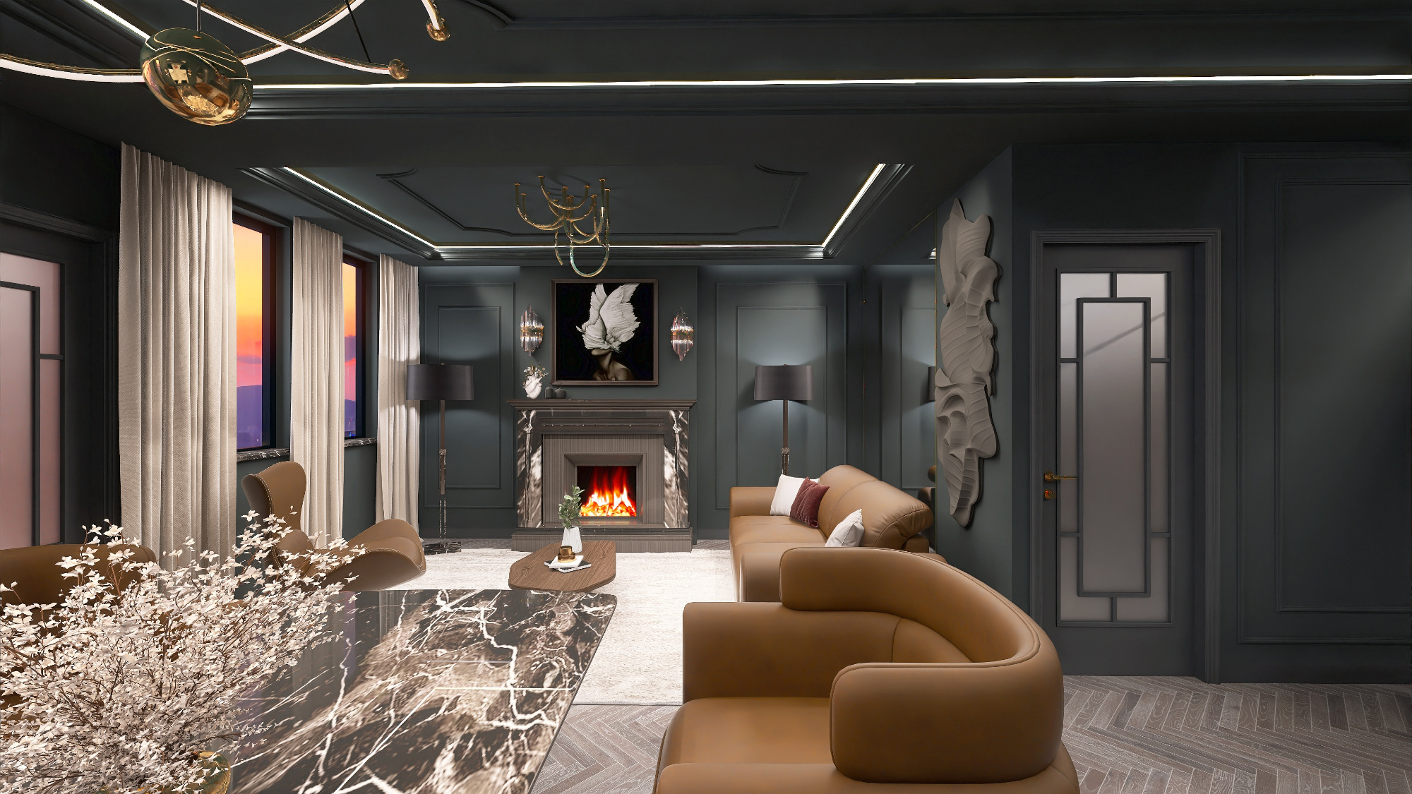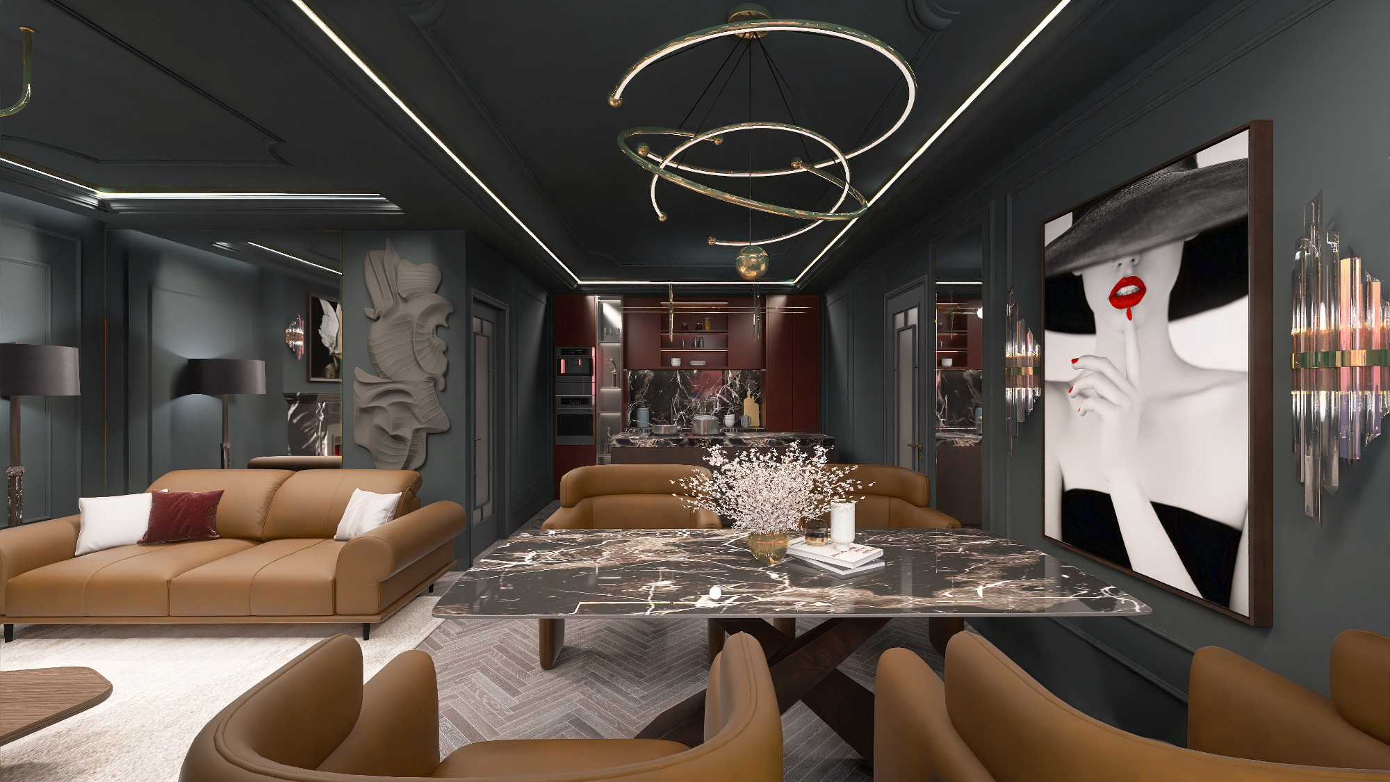 Die Wohnung dieser Kundin sollte ihre Persönlichkeit widerspiegeln – stark, selbstbewusst und zugleich voller Eleganz. Als Geschäftsführerin wünschte sie sich ein Interieur mit klarer Linie und einer gewissen Strenge, das dennoch Wärme und Individualität ausstrahlt. Dunkle, satte Farbtöne verleihen den Räumen Tiefe und Ausdruck, während goldene Akzente eine verspielte Note und einen Hauch von Luxus hinzufügen. So entstand ein Raumkonzept, das Charakter zeigt – kraftvoll, edel und unverwechselbar weiblich.
