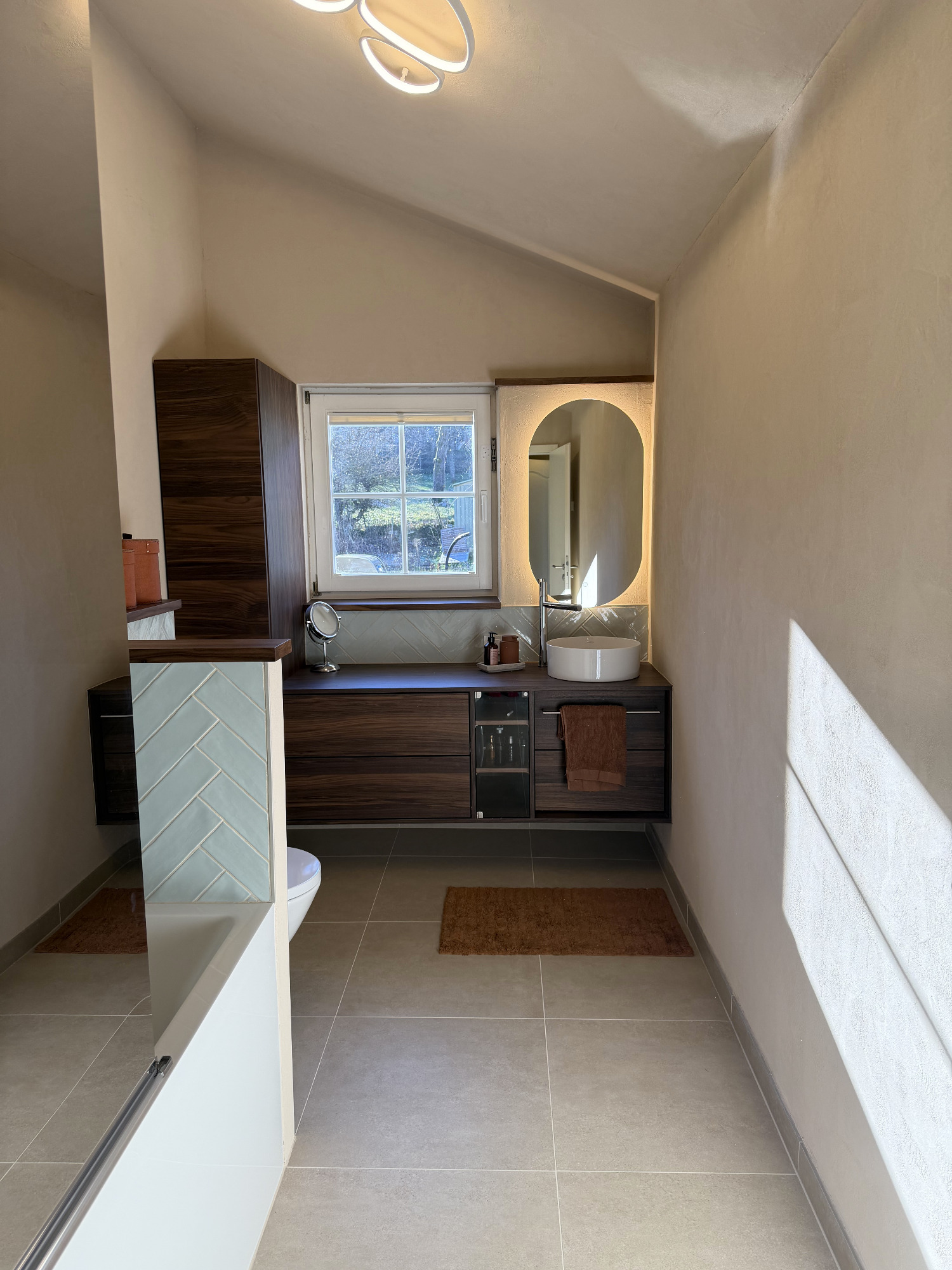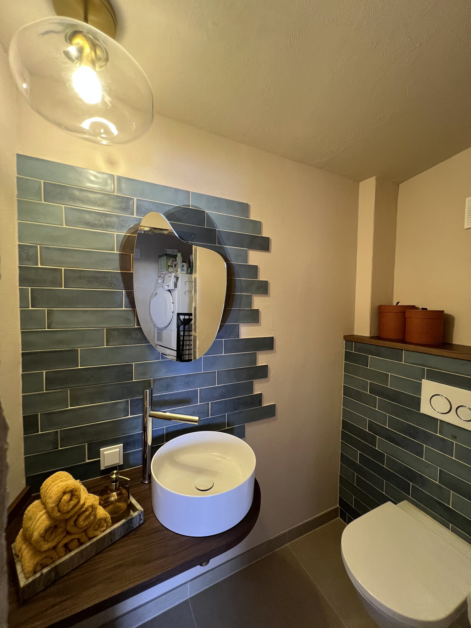 m Rahmen dieses Konzepts wurde der Grundriss liebevoll optimiert – ein entscheidender Faktor für den Kauf der Immobilie. Durch das Entfernen der Trennwände zwischen Wohn-, Ess- und Küchenbereich entstanden aus drei kleinen Räumen ein offener, großzügiger Wohn-Essbereich mit Küche, der Wärme und Gemütlichkeit ausstrahlt. Hier verschmelzen Kochen, Essen und Wohnen zu einem Ort, an dem man gerne zusammenkommt und sich rundum wohlfühlt.
