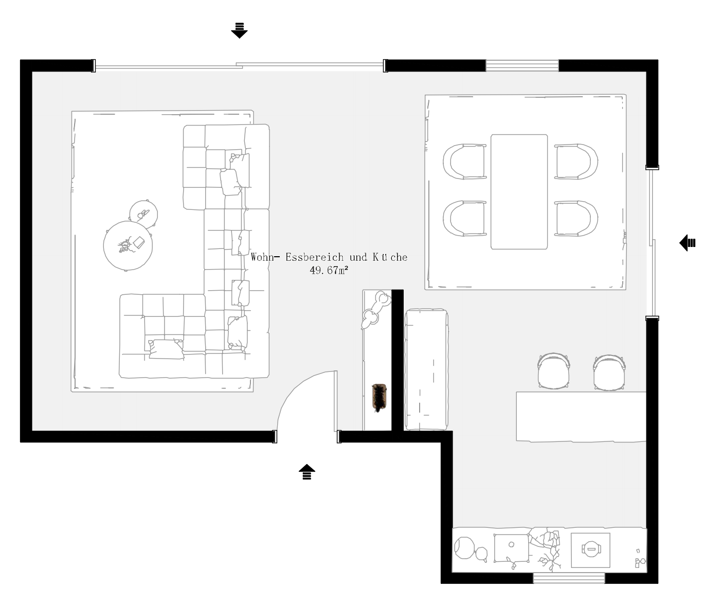 Konzept vor Hauskauf Wohn-Essbereich und Küche