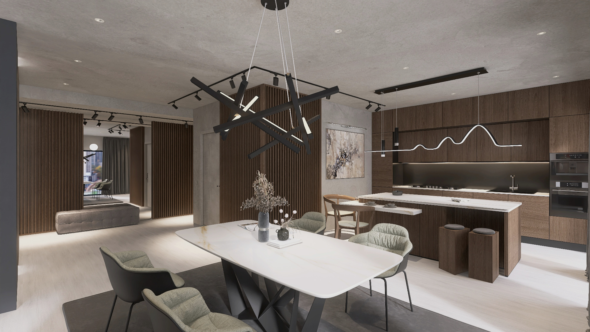 Diese Berliner Wohnung wurde für ein Paar gestaltet, das modernes Design liebt, aber zugleich eine tiefe Verbundenheit zur Natur verspürt. Dunkle, erdige Töne treffen hier auf elegante Grüntöne und schaffen eine Atmosphäre von Ruhe, Stil und Geborgenheit. Klare Linien und hochwertige Materialien verleihen dem Interieur eine zeitlose Modernität, während gezielte Akzente aus Holz und orange Leben und Wärme einbringen. So entstand ein harmonisches Zuhause, das urbane Eleganz mit natürlicher Leichtigkeit vereint.
